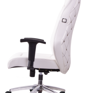 پایه این صندلی اداری فلزی است که به منظور مقاومت بیشتر و جلوگیری از زنگ زدگی با کروم آبکاری شده است و همین امر دلیل زیبایی و درخشندگی بسیار این صندلی مدیریتی است. ضمنا طراحی پایه صندلی به شکل پنج پر فلزی با چرخ های پلاستیکی موجب تسهیل در جابه جایی شده است.