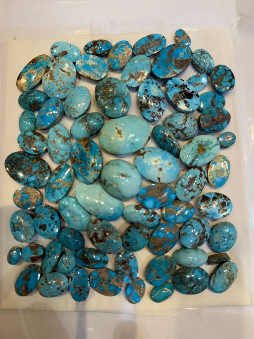 Each stone features natural color variations and unique characteristics, making this collection ideal for designers and gemstone enthusiasts looking for authentic turquoise pieces