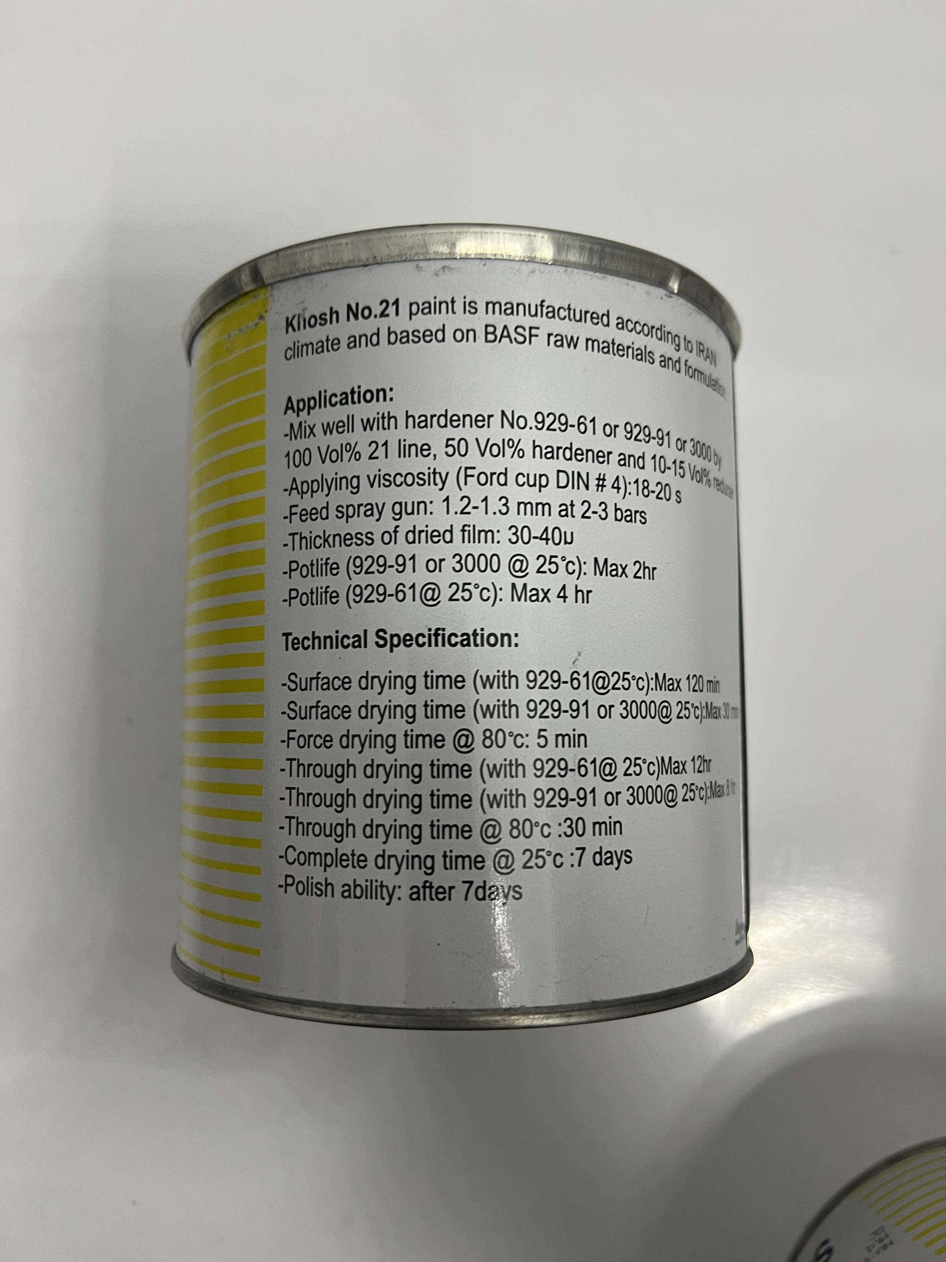 Khosh Automotive Paint in Black (Code M-26) is a high-quality two-component acrylic polyurethane paint designed for professional automotive body finishing and refinishing applications. This product delivers excellent coverage, a deep black finish, and exceptional durability. When mixed correctly with the recommended hardener and applied under standard conditions, it provides a uniform and glossy protective coating for vehicle body panels.