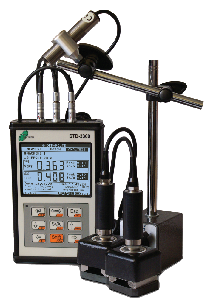 The STD-3300 dual-channel vibration analyzer is a key tool for troubleshooting and balancing rotating machinery such as turbines, compressors, pumps, electric motors, fans, generators, etc.